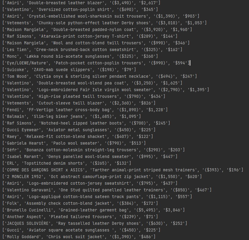 해외 유명 편집샵인 매치스패션,마이테레사,컬티즘,육스 웹 사이트에서 세일하고 있는 제품을 Python을 활용하여 데이터를 추출하고 csv파일로 저장해보겠습니다.